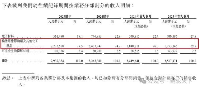 2、2025年前9个月,轮胎橡胶助剂及其他化工产品业务收入占全部收入的69.7%。