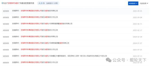 公开信息显示,彤程新材减持公告有25条,其中最值得注意的案例是早期投资机构宇彤投资。