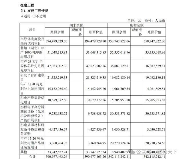 先看2025年半年报披露,彤程新材在建工程多为芯片半导体项目。