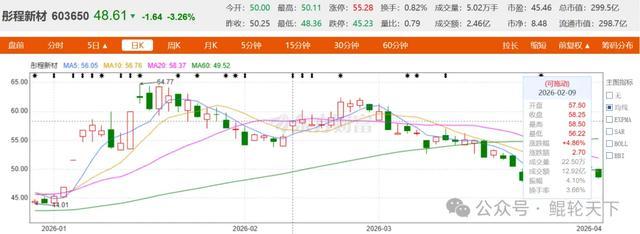 2026年2月9日,港股递交招股书次日,A股股价57.5元,2026年4月2日截稿时股价48.61元,市值约人民币299.5亿元。