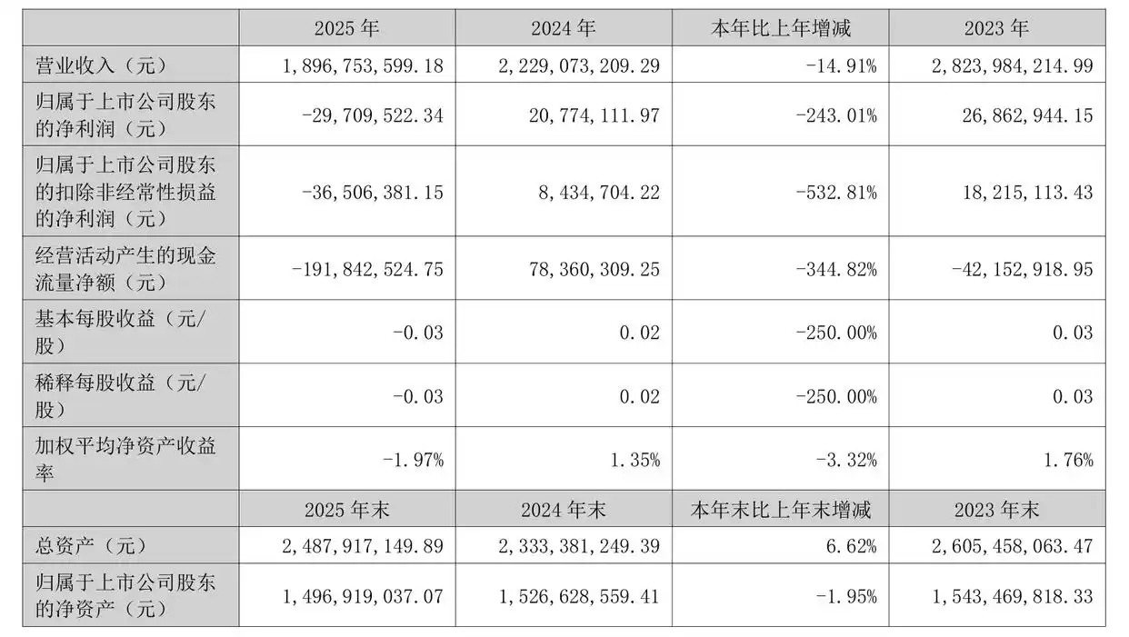 4月26日晚间线上股票开户,闽发铝业(002578)发布2025年年报,报告期内实现营业收入18.97亿元,同比下滑14.91%;归母净利润-2970.95万元,同比下降243.01%。
